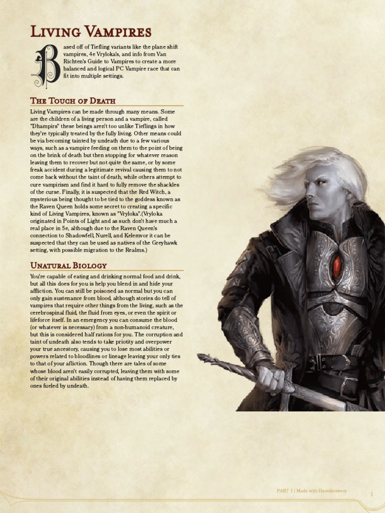 Living Vampire Race Pdf Pdf Vampires Dwarf Dungeons Dragons - While many play dungeons & dragons to enter a fantasy land of mystery and roleplay, others do it for the level ups, the numbers, and the sweet loot.