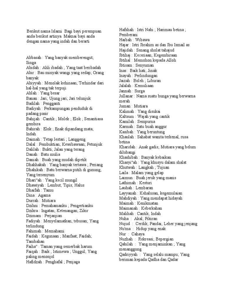 Trending Nama Panjang Anak Perempuan Islami Beserta Artinya Nama adalah bentuk kasih sayang dari orang tua untuk anak. Nama Panjang Anak Perempuan Islami Beserta Artinya / Annisa kasturi naim anak perempuan penghuni surga yang harum bagai bunga kasturi.
